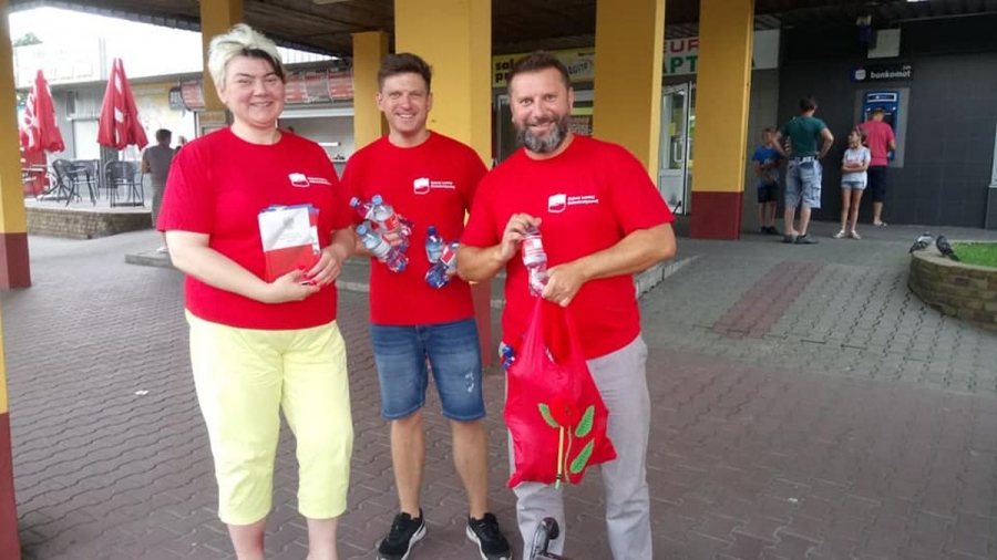 "Przypominamy mieszkańcom Zgierza, że upał może być niebezpieczny, dlatego trzeba pamiętać o kilku podstawowych zasadach, takich jak noszenie nakrycia głowy, możliwie jak najkrótsze przebywanie w pełnym słońcu i oczywiście picie dużej ilości napojów. Właśnie dlatego mamy dziś dla mieszkańców butelki wody, która pomoże przetrwać gorączki" - powiedział Łukasz Kubiak sekretarz SLD w powiecie zgierskim.