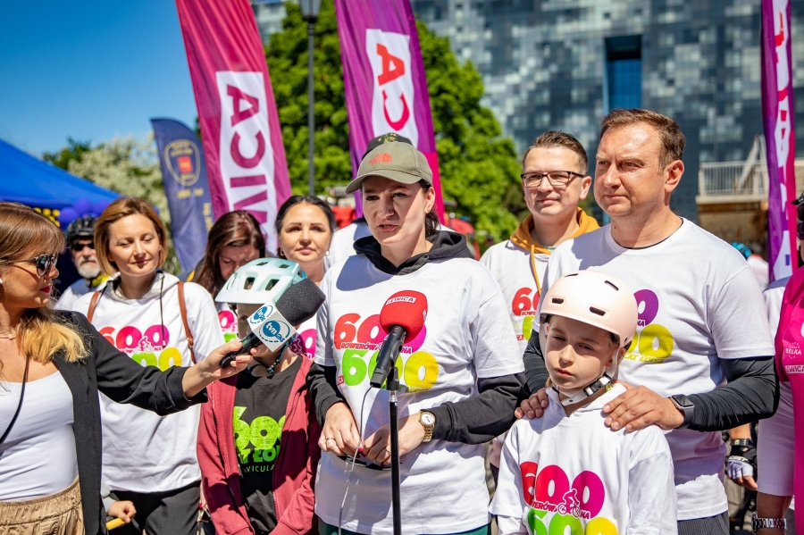 "Dzisiaj wpisujemy się w obchody 600-lecia Łodzi, a w imieniu władz miasta chciałam serdecznie zaprosić wszystkich mieszkańców do wspólnego świętowania, bo tych imprez towarzyszących 600-leciu Łodzi będzie bardzo dużo przez cały czerwiec, wszystkie weekendy. Mamy dwupiętrowy autobus, nie tylko dla turystów, można w weekendy wsiadać, pozwiedzać nasze miasto, również instytucje kultury organizują bardzo wiele imprez towarzyszących, ale to, co najważniejsze, cały czas gorąco zapraszamy na końcówkę lipca, od 28 lipca przez cały weekend, cztery sceny, nie tylko sceny muzyczne, ale też kabarety, a dzisiaj pokazujemy, że my również wpisując się w obchody 600-lecia. Potrafimy bawić się na sportowo i jak widać po frekwencji, która jest dzisiaj bardzo duża, mamy zapalonych rowerzystów, łodzian, którzy bardzo lubią spędzać aktywnie czas" — podkreśliła Małgorzata Moskwa-Wodnicka, Wiceprezydent Miasta Łodzi.
